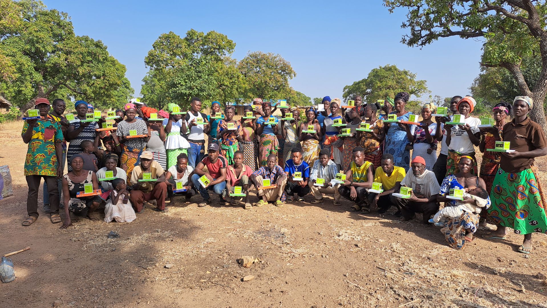 Duori-Gyan liegt in der Upper West Region von Ghana und ist Teil des Gemeindekonglomerats Duori. Da die Gemeinde ziemlich weit verbreitet ist, haben sie keinen Zugang zum Stromnetz. Man sollte nicht denken, dass dies die einzige Herausforderung ist, der sich die Familien stellen müssen. Während der Trockenzeit müssen sie weite Strecken zurücklegen, um die benötigte Wassermenge aus einigen Wasserläufen zu holen, die die meisten Dorfbewohner mit Trinkwasser und Wasser für die Nahrungsmittelproduktion versorgen. Wie in vielen anderen Bereichen, in denen Strommangel herrscht, werden potenzielle Arbeitszeiten verringert, was die Produktivität für den Lebensunterhalt der Menschen senkt. Auch die jüngere Generation ist betroffen. Da sie ihren Eltern bei der täglichen Landwirtschaft helfen, haben sie nur abends freie Zeit. Es hilft Eltern und Kindern, abends und morgens Licht zu haben, auch um ihre Telefone und andere Geräte aufzuladen. Dank der Solarkits ist diese Unterstützung gegeben. Damit versorgt ABIOLA 44 Familien mit ihrem Produkt, das von der Community sehr geschätzt wird.---- 1- SUROBRA Kojo, 2- BAYUO Peetere, 3- DOOPOGE Puli, 4- YELFAARIKUU Daril, 5-TANG Manpoo, 6- KUUFONG Alazuma, 7- BAGYLE Kullah, 8-DAKURAH Yel-Engtubon, 9- KULLAH Stephen, 10- PINPIM Agness, 11- BAABOROTERO Koopoge, 12- TANG Kuuba-Ebon, 13- SAAPOO Tampoge, 14- ZULEE Dari, 15- AZUMA Masa, 16- DERY Dekongme, 17- KUNO Puli, 18- TIGO Yaa, 19- BAYOR Soyen, 20- DANTOP Mafilda, 21- BAYOR Duo, 22- KULLAH Tene, 23- BABA-UUNOVURI Albaare, 24- TANG Talayel, 25- BAYUO Tawiah, 26- SEG-KYENUU Akua, 27- BAYOR Kana, 28- GBIEL Tang 29- KUUFON Alice, 30- BAYOR Kugbie, 31-NAANGMENBA-EREH Kugbie, 32- BAYOR Ninfaasiekuu 33- YELNENUOR Amos, 34-KOORLOORI Faustina, 35- ENMAALEH Kuubanyereeh, 36- BAYOR Zinikullah, 37- DONGIMA Songleh, 38- PUKYIREH Matthew, 39- TAMBO Nang, 40- BA-EREEH Dassah, 41- BAYUO Balanoe, 42- KOONOO Adama,, 43- NANG Foopuo, 44- GYIE Mary