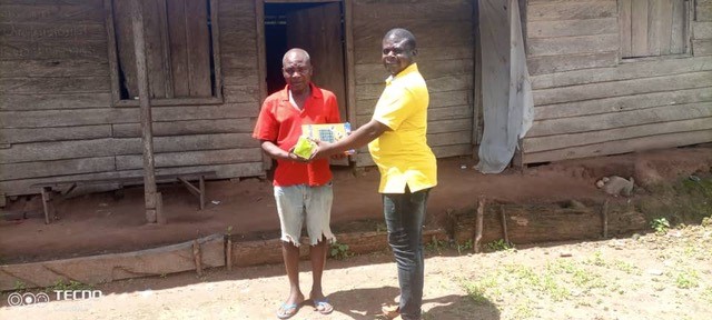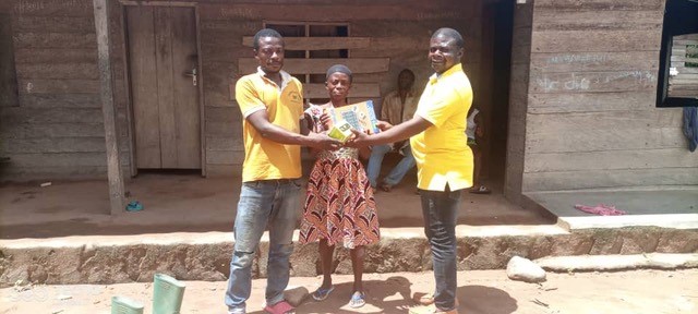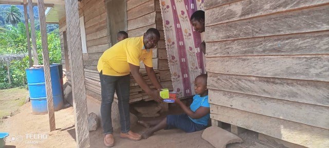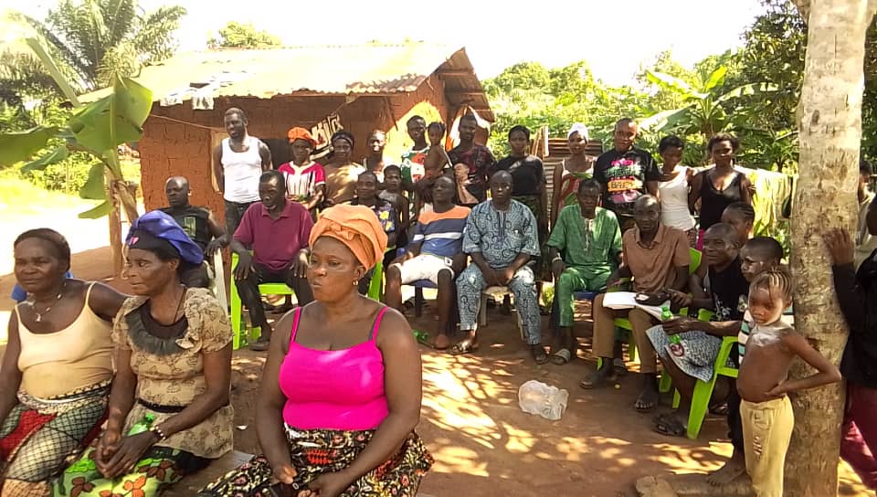 Das Besondere hierbei ist, dass der Dorfvorsteher nicht wollte, dass dieses Ereignis gewertet wird, und sich schnell zu uns gesellte und sich im Voraus bei der NGO ABIOLA für diese Geste bedankte, die an der Stelle seiner Kämpferinnen gemacht wird. Wie die ersten beiden, die wir besuchten, schließen sich die Frauen den gleichen Zielen an. Das besuchte Dorf liegt nur 3 Kilometer von Togo entfernt. Die Anwesenheit eines Herrn vor dem Dorfvorsteher überraschte mich insofern, als er ein sehbehinderter Mensch war, der dorthin kam, um von dieser Solarlampe zu profitieren und seinen Kindern den Genuss dieser Gnade zu ermöglichen. Hier ist die Liste der Frauen sowie die Namen der oben genannten Männer 1-MPO Sabi, 2-TANORI Bernard,3-KOUAGOU Jeanne,4-KOUAGOU Christine,5-KOUAGOU Madeleine, 6-SEMA Véronique, 7-SEMA Julien,8-NTCHA Antoinette,9-NDAH Jeanne,10-KOUAGOU Hélène, 11-TAYENA Ndiliwè,12-KOUAGOU Albertine,13-MPO Colette,14-KOUAGOU Victoire,15-NTCHA Pauline,16-NTCHA Marguérite,17-TCHAMOU Ncoa Pauline,18-NTCHA Emilienne,19-NDAH Bernadette,20-NKOUEI Rodrigue, 21-NTCHA N Elisabeth,22-MPO Antoinette,23-SIMBIA Matthias, 24-TANORI Marguérite,25-KOUAGOU Téna , 26-MPO Pauline,27-YENI Esther,28-TOUOTA Ncoa,29-MPO Véronique,30- NDAH Madeleine,31-NTCHA Romaine,32-NTCHA Aline,33-NTCHA Ncoa Philomène,34-NCOA Marie, 35-BANIKOU Pélagie, 36-MPO Angèle, 37-NTCHA Jeanne,38-NATTA Téna