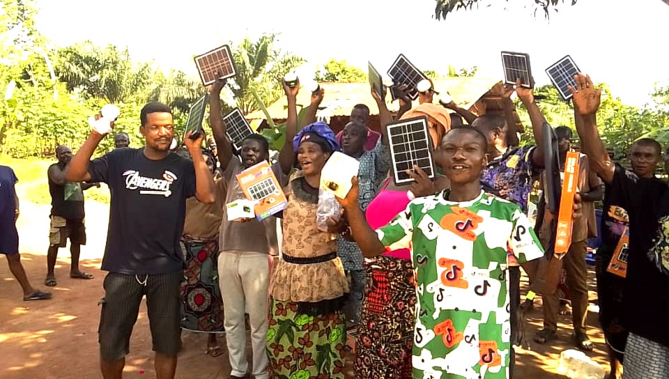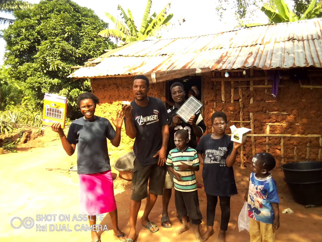 IGBENE ist eine ländliche Gemeinde, in der die Ijaw und Urhobo sprechenden Stämme leben. Igbene befindet sich ebenfalls im Verwaltungsbezirk Ovia South West im Bundesstaat Edo. Die Dorfbewohner haben keinen Zugang zu elektrischen Strom und Wasser, was für sie eine große Herausforderung ist. Die Solar Kits sind für die Menschen hier von unschätzbarem Wert. Die Bewohner sind Bauern und leben in kleinen Lehmhütten. Sie leben von ihrer Landwirtschaft. Die Solar Kits verändern die Situation des Dorfes absolut und bringen mit dem Solar Licht Hoffnung und Erleichterung für die Familien. Sie können nun abends viel einfacher arbeiten, ihre Handys aufladen und die Kinder können abends ihre Bücher lesen. In Igbene wurden 50 Familien ausgewählt. Dafür sind wir und die Menschen in Ute Christoph Koehler und dem ABIOLA-Team unendlich dankbar.