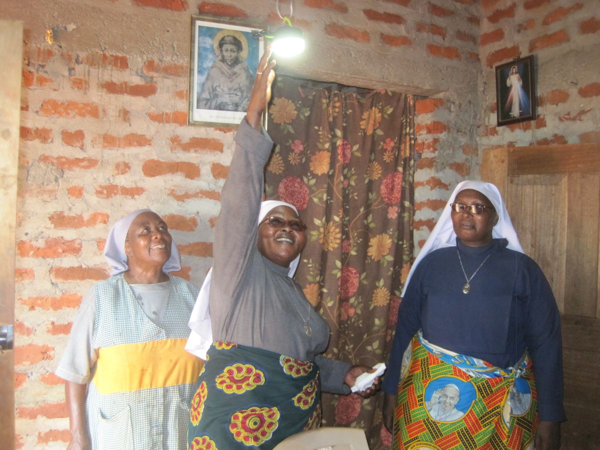Ursprünglich wollte ich schon im Januar nach Tansania reisen, doch nun hat sich die Sache auf Ende Februar verschoben. Aber jetzt bin ich da. Ich habe 3 Abiola-Solar-Kitsdabei. Zur Zeit bin ich in Korogwe, das liegt am Fuß der Usambara-Berge. Etwa 10 kmaußerhalb der Stadt betreiben die Schwestern von hiesigen Convent einen kleinen Außenposten,bestehend aus einigen Gebäuden, einer Zisterne und etwas Landwirtschaft. Strom und Lichtgibt es nicht. Wir waren gestern dort und haben ein Solar Kit übergeben. Anbei ein Bild wie Sister Rafaeladie Lampe einschaltet. Wir hoffen dass dieses Kit lange hält. Nächstes Jahr will ich wieder kommenund viele Solar Kit dabei haben. Ich habe mich auf dem Markt in Korogwe ungesehen, solch ein Solar Kit findet man nicht. Eventuell findet man etwas ähnliches in Arusha.