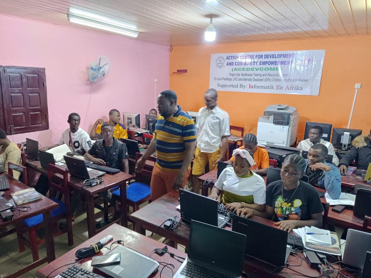 Diese Schule wird hauptsächlich von intern vertriebenen Jugendlichen besucht und von Informatik für Afrika unterstützt. Die Studenten werden auf die staatlichen Prüfungen vorbereitet. Das Programm legt auch Wert auf die Entwicklung wichtiger Soft Skills wie Kommunikation, Teamarbeit und Problemlösung. Die Teilnahme an der ABIOLA Akademie gibt den Jugendlichen noch mehr Möglichkeiten, ihr Wissen zu erweitern. ***** ABIOLA freut sich, einen Beitrag für die Bildung der Schüler in Kamerun leisten zu dürfen. Vielen Dank für die Unterstützung bei der Einrichtung der ABIOLA Akademie an Projektleiterin Rosina Hug.