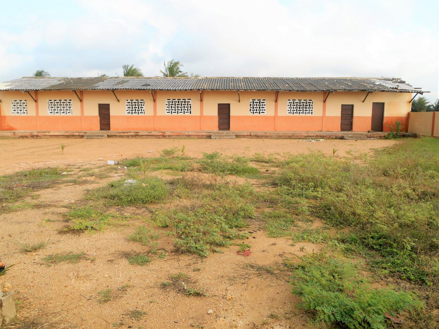 Das Kindergartengebäude in Agbodrafo steht mit der Dachneigung in Südrichtung am Meer und verfügt über zwei Gruppenräume und zwei kleinere Nebenräume. Auf dem ummauerten Gelände befindet sich noch das Toilettengebäude und ein Gebäude mit einem Klassenraum, der bisher von der Schule für das erste Schuljahr genutzt wurde.