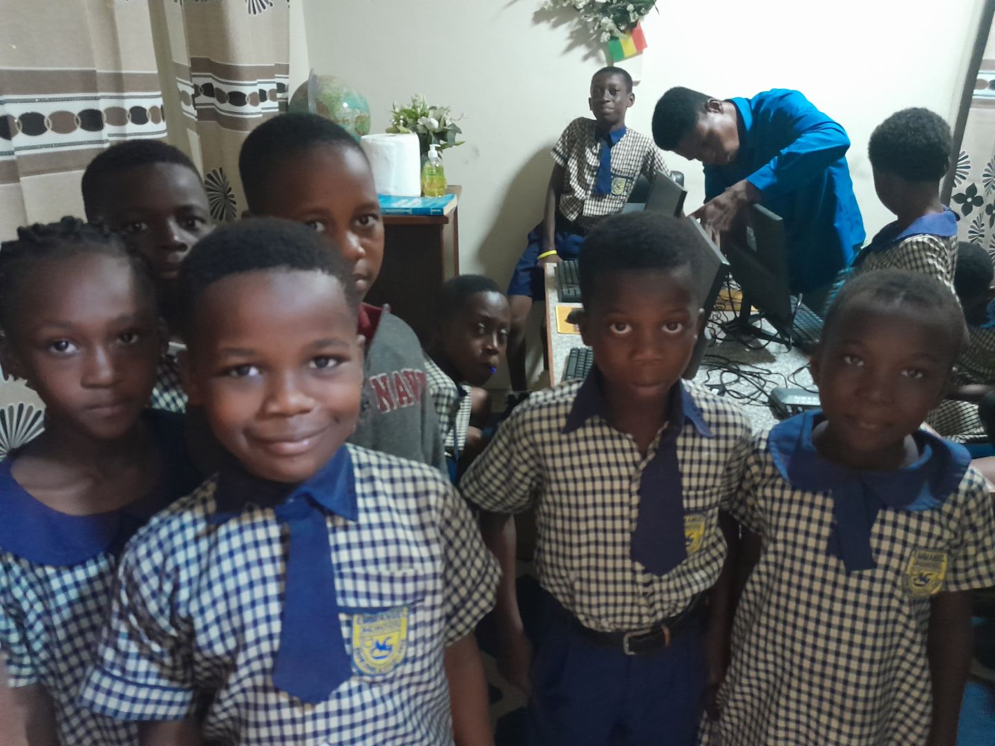 Rev. Quarmson Thomas Henry ist der leitende Pastor der Holy Ghost Assemblies of God, Ashaiman und der Gründer der Schule. Aufgrund seines vollen Terminkalenders hat er Dec. Silas zum Leiter der Schulangelegenheiten ernannt. Die Holy Ghost AG Academy wurde im Jahr 2009 gegründet. Die Schule hat derzeit eine Gesamtbevölkerung von 113 Schülern, wobei 56 Frauen 49 % und 57 Männer 51 % ausmachen. Die Schule verfügt vom Kindergarten bis zur Junior High School über fünfzehn (16) Lehrkräfte und vier (4) nicht lehrende Mitarbeiter. Der Unterricht findet ab 20:00 Uhr statt. bis 3 Uhr morgens unter der Woche. Das Interesse der Studierenden ist durch die Abiola-PCs geweckt. Schüler übertreffen ihre Lehrer häufig in puncto Lerngeschwindigkeit. Wir hoffen auch, Technologie einsetzen zu können, um bestimmte Fähigkeiten der Schüler zu erkennen und zu verbessern. Auch Lehrer können Computer nutzen, um ihre Ausbildung zu verbessern. Auch Erwachsenenbildung per Computer ist für Eltern und Dorfbewohner möglich. Darüber hinaus haben wir eine Internetverbindung installiert, damit Studierende auf die ABIOLA Online Academy zugreifen können. Erwachsene können Computer nutzen, um unter anderem Informationen für geschäftliche Zwecke, Einkäufe und medizinische Zwecke zu erhalten. Wir sind uns darüber im Klaren, dass wir bei erfolgreichem Abschluss unserer Kurse zusätzliche Computer von ABIOLA erhalten. Rev. Daniel, unser General Manager, verdient unsere Anerkennung. Auch an unseren kompetenten Vorgesetzten Pastor Jeffery Ayembilla für die Zeit, die er für das Hin- und Herreisen aufgewendet hat. ***** ABIOLA freut sich, einen Beitrag für die Bildung der Schüler in Ghana leisten zu dürfen. Vielen Dank für die Unterstützung bei der Einrichtung der Computer an Pastor Dr. Daniel Ayembilla, Referent Andrew Jeremiah Nai-Mensah, Referent Jeffery Ayembilla sowie Phillip und David und alle anderen Helfer.