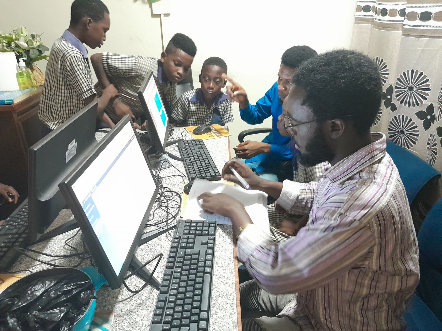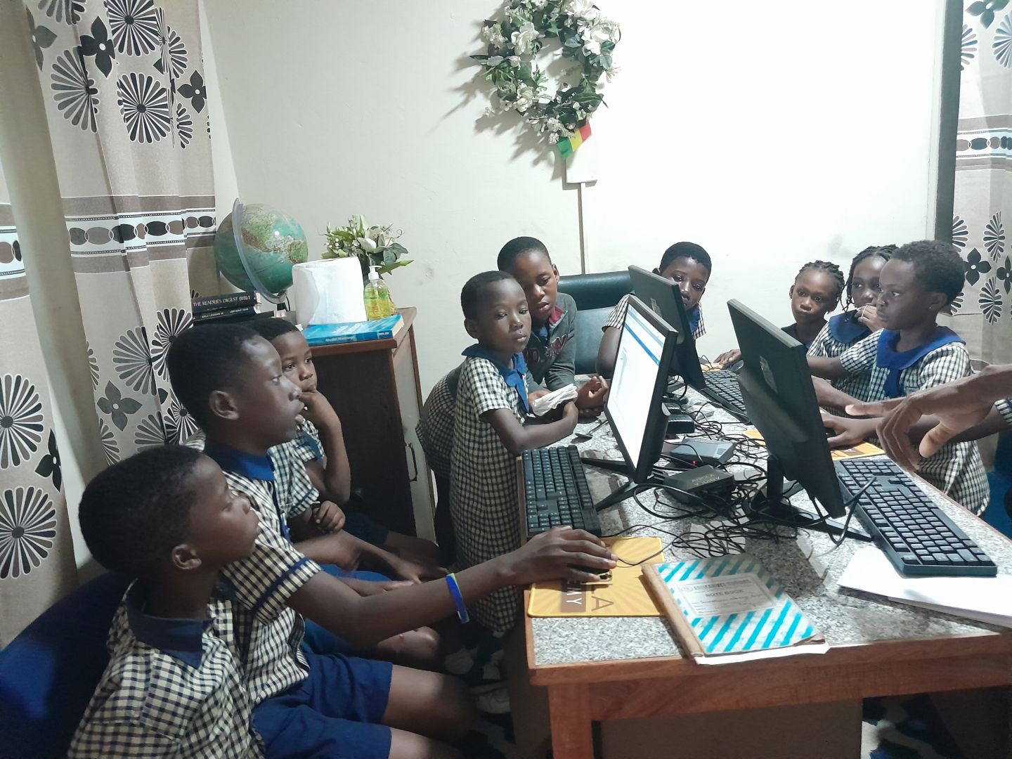Rev. Emmanuel Boateng ist der verantwortliche Pfarrer des Bildungskomplexes Emmanuel AG in Sunyani. Es wurde im Jahr 2012 in Kumasi, Asokwa, gegründet. Die Schule hat derzeit eine Gesamtbevölkerung von 542 Schülern, wobei 320 Frauen 49 % und 222 Männer 51 % ausmachen. Die Schule verfügt vom Kindergarten bis zur Junior High School über fünfzehn (18) Lehrkräfte und vier (6) nicht lehrende Mitarbeiter. Im Computerraum der Schule sind einfach keine Computer im Einsatz. An der Schule werden mehr Computer benötigt, um erfolgreiches IKT-Lehren und -Lernen zu unterstützen und den Schülern den Zugriff auf Materialien aus dem Internet über verschiedene Suchmaschinen zu erleichtern. Der Unterricht findet von 7.00 bis 15.00 Uhr statt. während der Woche. Das Interesse der Studierenden ist durch die Neupositionierung der PCs geweckt. Schüler übertreffen ihre Lehrer häufig in puncto Lerngeschwindigkeit. Wir hoffen auch, Technologie einsetzen zu können, um bestimmte Fähigkeiten der Schüler zu erkennen und zu verbessern. Auch Lehrer können Computer nutzen, um ihre Ausbildung zu verbessern. Auch Erwachsenenbildung per Computer ist für Eltern und Dorfbewohner möglich. Darüber hinaus haben wir eine Internetverbindung installiert, damit Studierende auf die ABIOLA Online Academy zugreifen können. Erwachsene können Computer nutzen, um unter anderem Informationen für geschäftliche Zwecke, Einkäufe und medizinische Zwecke zu erhalten. Wir sind uns darüber im Klaren, dass wir bei erfolgreichem Abschluss unserer Kurse zusätzliche Computer von ABIOLA erhalten. Rev. Daniel, unser General Manager, verdient unsere Anerkennung. ***** ABIOLA freut sich, einen Beitrag für die Bildung der Schüler in Ghana leisten zu dürfen. Vielen Dank für die Unterstützung bei der Einrichtung der Computer an Pastor Dr. Daniel Ayembilla, Referent Andrew Jeremiah Nai-Mensah, Referent Jeffery Ayembilla sowie Phillip und David und alle anderen Helfer.