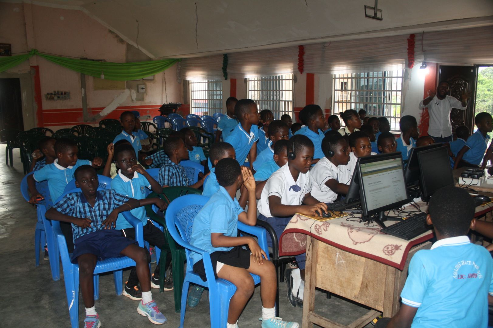 Nkum AG Int. Die Schule in Nkum wurde im Jahr 2016 von der Versammlung Gottes, Nkum, gegründet. Seitdem leitet Pastor Ato Maxwell die Schule. Die 12 Lehrer unterrichten insgesamt 120 Schüler in den Abteilungen Creche, KG, Primary und JHS. Neben einem Kindergarten gibt es auch 6 verschiedene Schulklassen. Neben der Grundschule gibt es auch eine Junior High School mit derzeit 30 Schülern. Das Verhältnis zwischen Mädchen und Jungen ist in etwa ausgeglichen. Bei der Schulkleidung handelt es sich vorzugsweise um AoG-Einheitskleidung. Es ist uns ein großes Anliegen, dass unsere Kinder im christlichen Glauben erzogen werden und einen disziplinierten Umgang mit Lehrern und Mitschülern lernen. Der Unterricht findet unter der Woche von 8.00 bis 15.00 Uhr statt. Die übertragenen Computer stoßen bei den Studierenden auf großes Interesse. Oftmals lernen Schüler schneller, als Lehrer es ihnen beibringen können. Wir versuchen auch, den Computer einzusetzen, um die besonderen Fähigkeiten der Studierenden zu erkennen und sie entsprechend zu fördern. Die Computer ermöglichen den Lehrern auch, sich weiterzubilden. Auch Erwachsenenbildung für Eltern und Dorfbewohner ist mit dem Computer möglich. Wir haben außerdem ein Internet eingerichtet, das es Studierenden ermöglicht, die Kurse der ABIOLA Online Academy zu studieren. Auch Erwachsene können den Computer nutzen, um Informationen für Arbeit, Beschaffung, Medizin und viele andere Bereiche zu erhalten. Wir sind uns bewusst, dass wir noch mehr Computer von ABIOLA bekommen werden, wenn unsere Studierenden ihre Kurse entsprechend studieren. ***** ABIOLA freut sich, einen Beitrag für die Bildung der Schüler in Ghana leisten zu dürfen. Vielen Dank für die Unterstützung bei der Einrichtung der Computer an Supervisor Dr. Daniel Ayembilla und Rev. Jeffery Ayembilla.