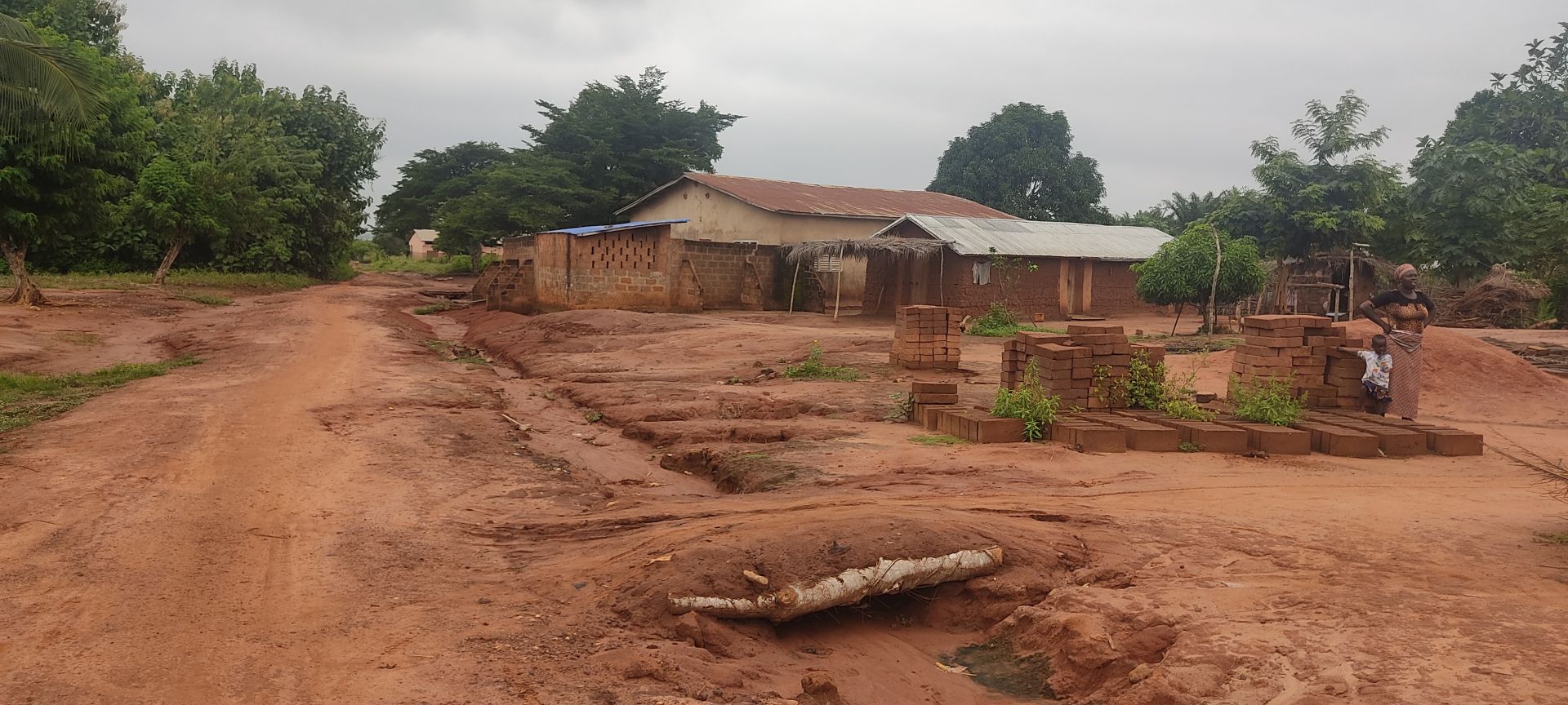 Dorf mit roter Erde zwischen Tchankada und Kpodji, Arrondissement Adjido, in der Gemeinde Toviklin, GBèko, etwa 5 km von TOVIKLIN entfernt. Es ist die Heimat einer Bevölkerung, die hauptsächlich von der Landwirtschaft und Kleinvieh lebt. Kein Strom, aber das GSM-Netz ist empfangbar .